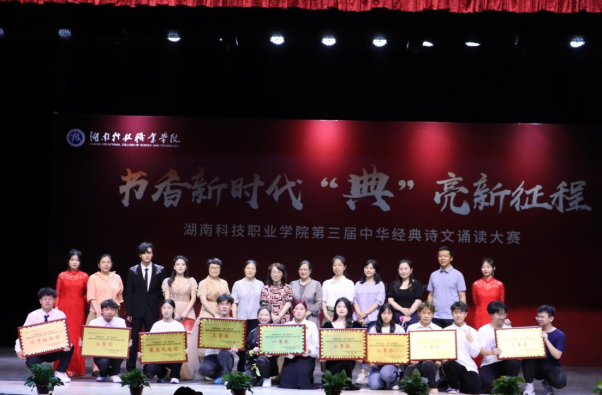 为贯彻落实党的二十大精神,弘扬中华优秀语言文化,从中华经典中汲取智慧力量、坚定理想信念、彰显时代精神,5月31日晚,我校在雨花校区大礼堂举行第三届中华经典诗文诵读大赛决赛。人文与音乐学院、教师工作部、团委、创新创业就业学院等部门负责人及各二级学院部分师生参加。