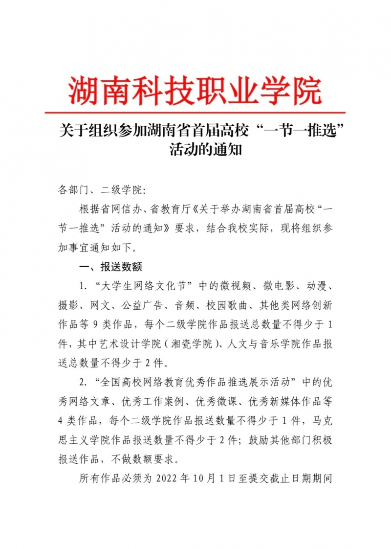 关于组织参加湖南省首届高校“一节一推选”活动的通知