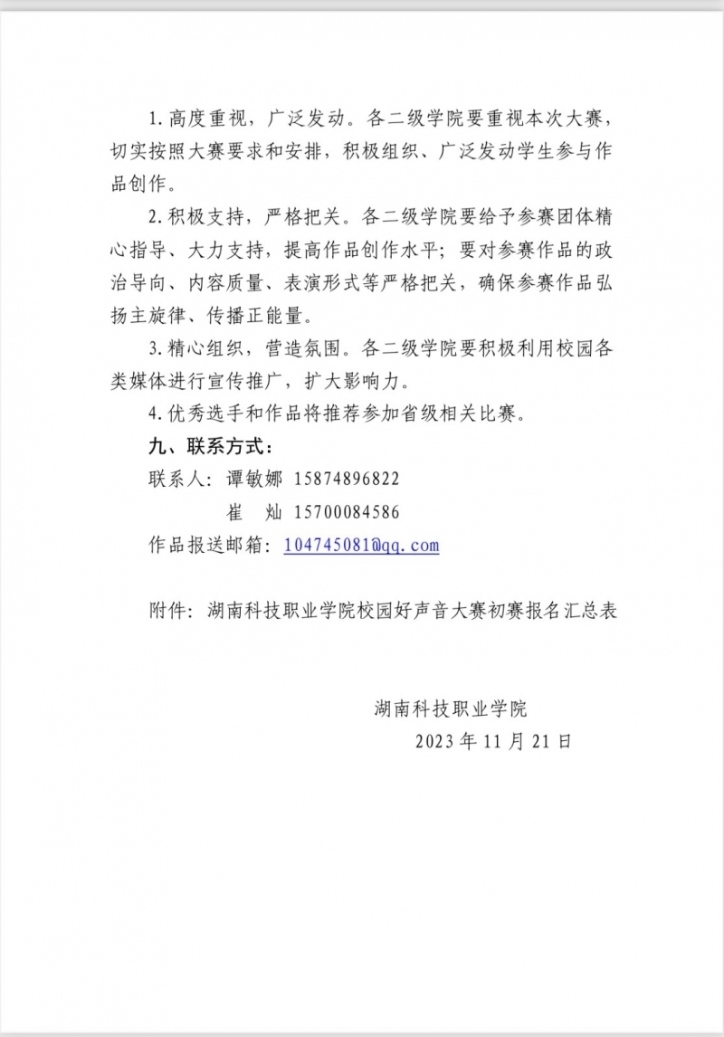 关于组织湖南科技职业学院校园好声音大赛的通知