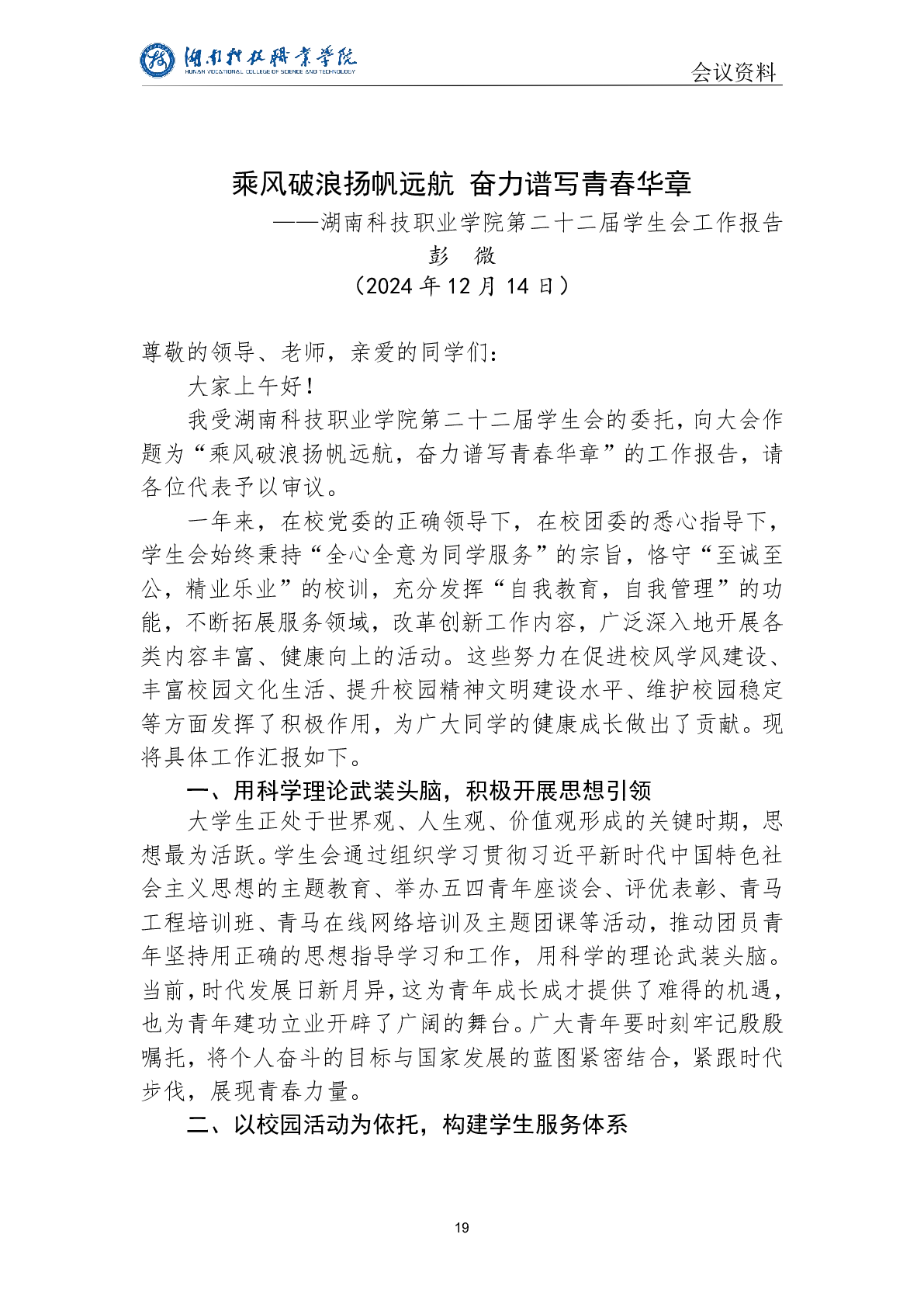 #湖南科技职业学院 第十五次团员代表大会 暨第二十三次学生代表大会