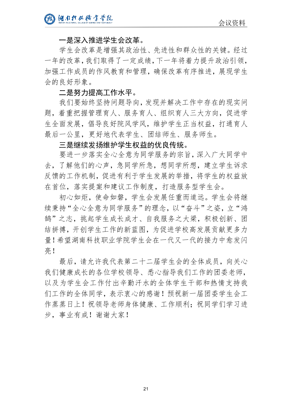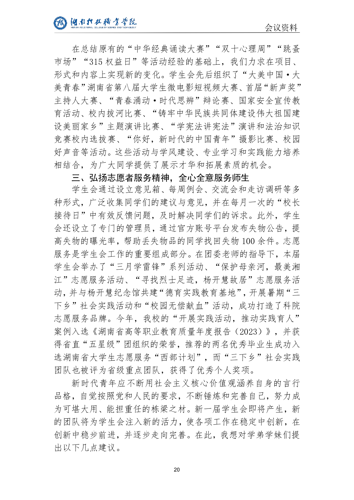 2022-2023学年湖南科技职业学院学生会改革情况自评公开
