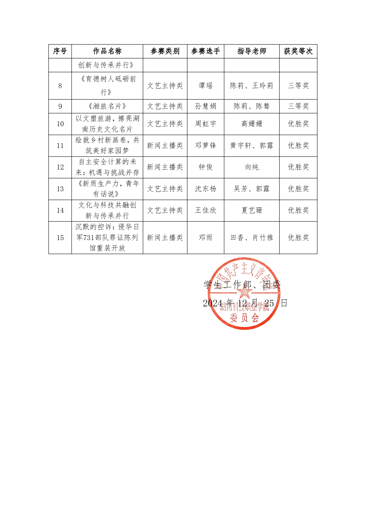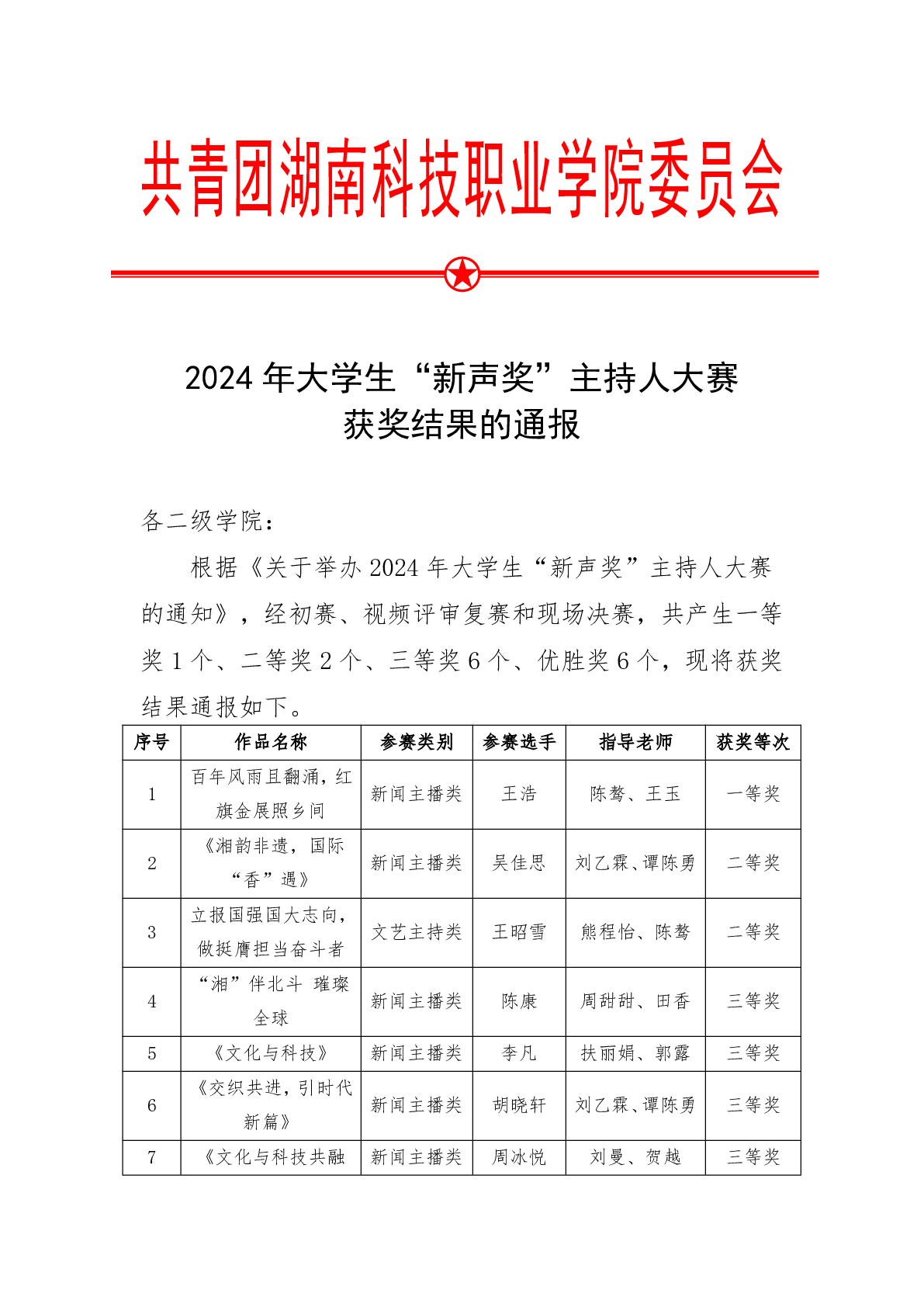 2024年大学生“新声奖”主持人大赛 获奖结果的通报