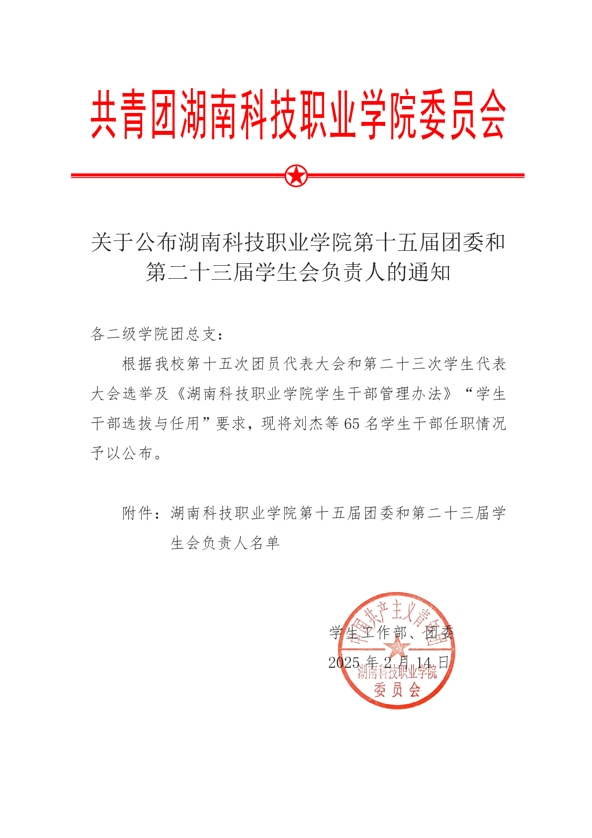 关于2024年度湖南科技职业学院共青团工作评议结果的通报