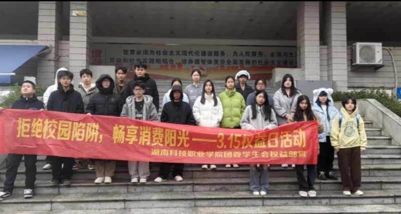 为增强全校师生的法治观念与消费维权意识,营造安全、诚信、和谐的校园消费环境,3月14 - 15日,我校“诚信护航·权益同行——校园3·15消费者权益保护行动”在天心南、北校区及雨花校区同步开展。校团委权益部及相关学生工作人员全程坚守,以贴心服务让维权知识走进师生身边,为校园消费安全筑牢防护墙。